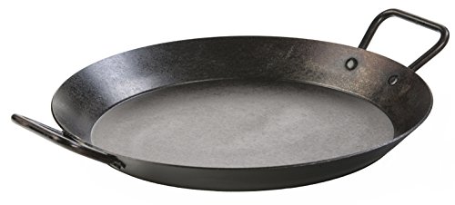 Made of 12 gauge carbon steel it is brutally tough and takes high heat for browning and searing. It maintains very low and very high temperatures, making the pan a highly effective and versatile cooking piece. It is constructed of carbon steel so it takes well to high heat. Each skillet is factory seasoned with natural soy bean oil. This easy release oil finish improves with use. Carbon steel performs extremely well in residential kitchens and is preferred in professional kitchens. Suitable for all types of heating sources including electric, gas, glass, induction, oven and campfire. It performs extremely well over open flame. It is a great choice for cooking for a large group whether in the dining room or around the campfire. It's also great for paellas, a spanish dish prepared by simmering together chicken, seafood, rice, vegetables, and saffron and other seasonings. Paella is usually cooked in the open air over a hot wood fire so that the dish can be infused with the smoke flavor. I Read more details..