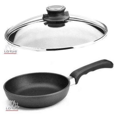 Lotus Pan Flat Pan 20cm Induction Safe with removable Handle and Glass Lid with Security Glass. . - Made in Germany. - Lotus Titan . - Thermophor floor, about 9mm to 10mm thick. . - Oven Proof up to 250 degrees. - Attention: Only available from MK-tronic! Suitable for Induction hobs. Read more details..